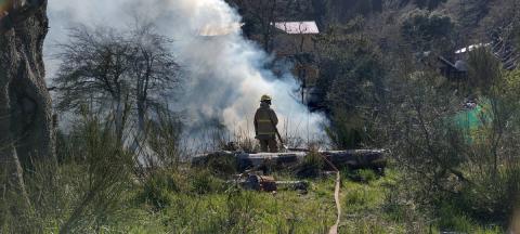 Bomberos Campanario y Ruca Cura, a los que se sumó el SPLIF, trabajan en una quema que se descontroló en el sector, generando angustia y preocupación en vecinos de las casas lindantes.
