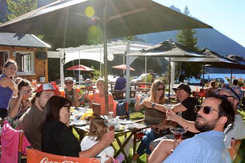 Sol, lago, ricos platos, buenos tragos y buena musica para acompañar este increible escenario.