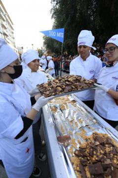 MILES Y MILES DE PORCIONES DE CHOCOLATE FUERON REPARTIDAS AYER EN LA BARRA MAS GRANDE DEL MUNDO