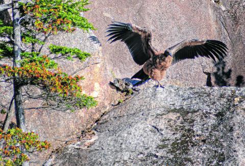 En la estepa suele visitar “buitreras”, donde anidan e interactúan grupos de cóndores. También es posible divisar allí halcones, águilas moras, caranchos, aguiluchos, loicas y flamencos.