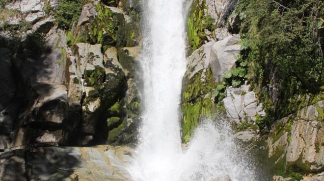 La trepada acompaña el arroyo que corre a nuestra derecha. Antes de llegar a la cascada, un pequeño salto anuncia lo que viene. El sendero finaliza al pie de un salto de agua que se descubre entre las rocas y cae en un piletón de piedra. Vapor, espuma, y si la luz lo permite, hasta se puede observar un arco iris.