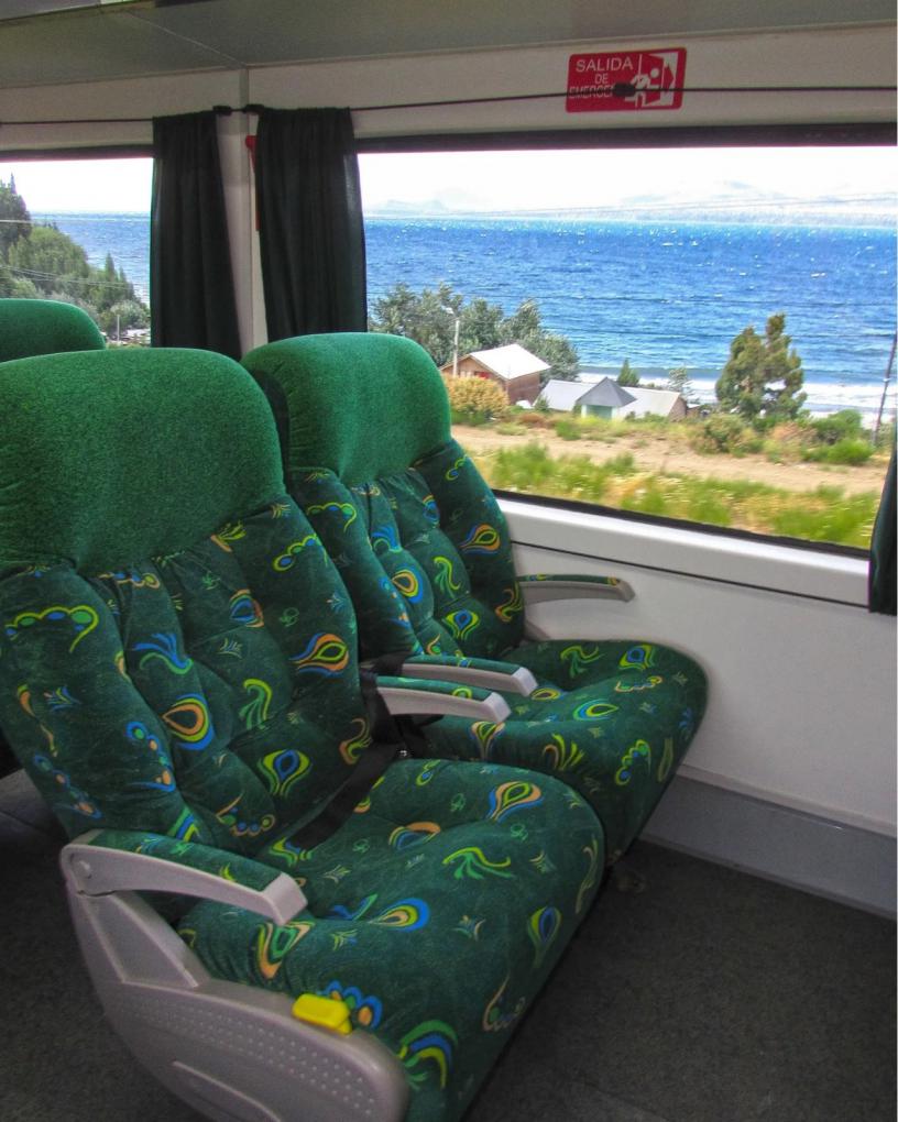 Al abrir las cortinas de la ventanas se muestra un mundo de paisajes imponentes de cerros bajos, típicos de la estepa, neneos y coirones y delante de las vías, saltando y corriendo de prisa, alguna que otra liebre que se cruza entre las vías férreas.